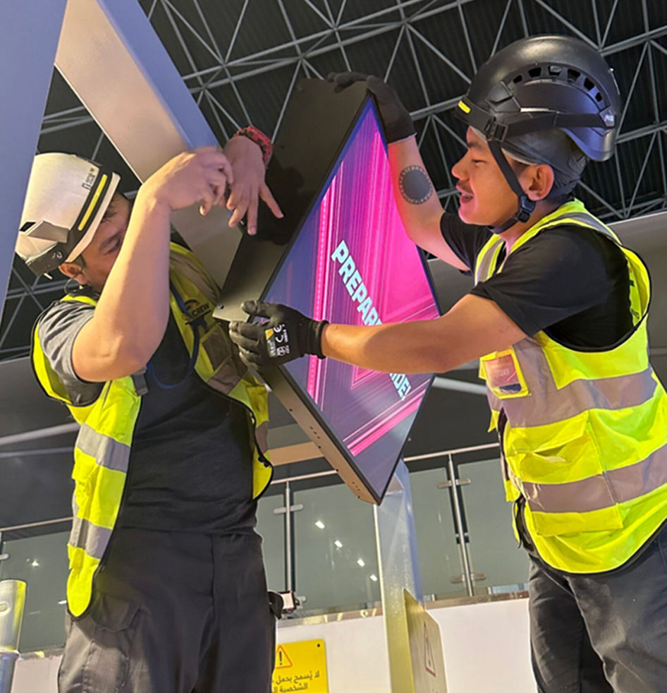 Installation of a high-brightness outdoor LED billboard including mounting, power & signal integration, and system commissioning.